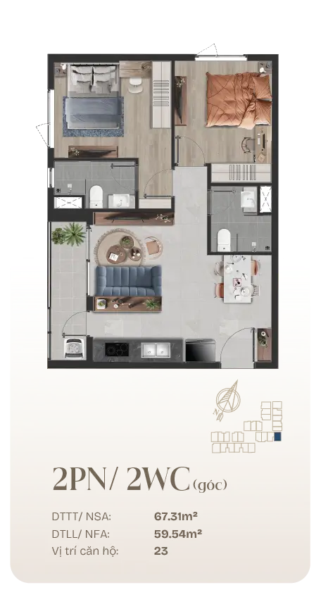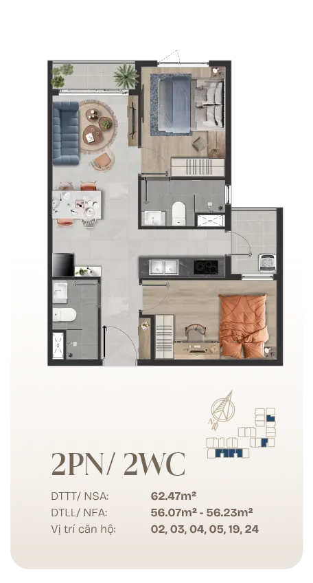 Thiết Kế Căn Hộ 2 Phòng Ngủ
